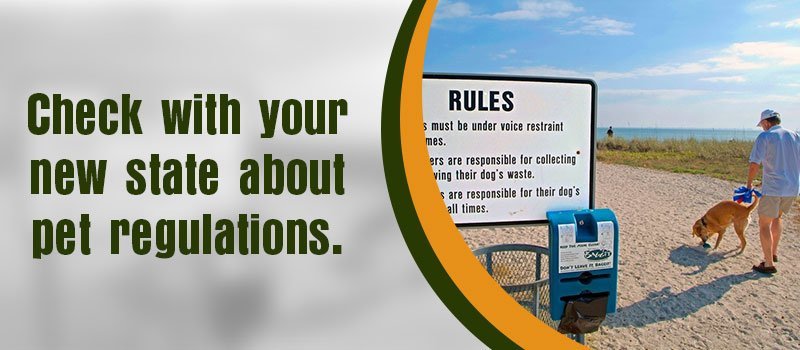 Before moving to a new state/province with your pet, keep in mind the local leash laws, pet ordinances, and pet licensing requirements. You may visit the website of the U.S. Department of Agriculture or the State Veterinarian’s office in your destination state if you have any questions and to get more details on how to coordinate the move for your pet. For local ordinances, you can also contact the City Clerk’s office, local organizations, or animal control facility in the area where you’ll be moving.